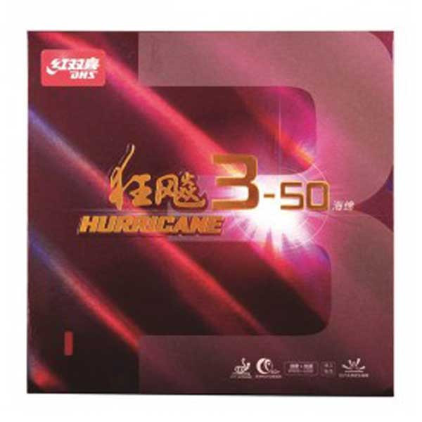Kinesisk belegg med innebygd limeffekt. Klebrig overflate. Raskere enn tradisjonelle kinesiske belegg. Hurricane-beleggenes styrke er i serv, retur og åpningsloop. De krever en del kraft, og er derfor mest egnet som forehand-belegg. Denne Hurricane 3-50 er med en ny type svamp som minner om dem man kjenner fra europeiske tensorbelegg. Dette gir både mer fart og større feiltoleranse enn tidligere utgaver av Hurricane-serien. Svampen er fortsatt hard, men ikke så hard som tradisjonelle kinesiske belegg.